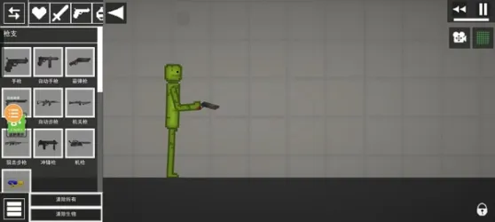4、胳膊停住在空中停住之后,我们需要在左上角选择枪械图标去选择枪械;