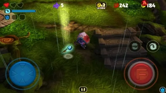 游戏操作简单,采用自动瞄准,当森林里的小怪物进入射击范畴内,就会自动对目标进行射击。游戏里有道具和怪兽可以使用,玩家集齐三个蓝色符石之后就会自动召唤一只小怪兽协助玩家战斗,玩家们要注意小怪兽的存在时间有限,可以帮助玩家解除暂时的危机。