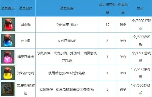 奇幻射击道具详解如下:(1~5)