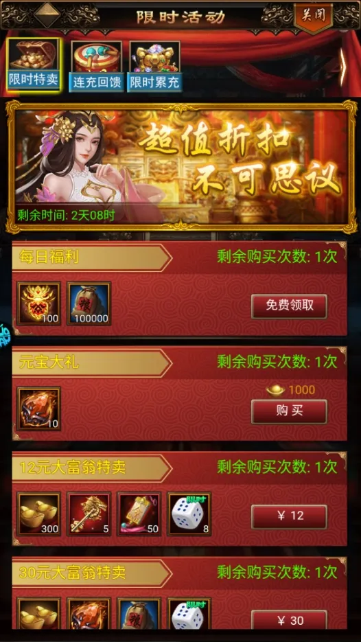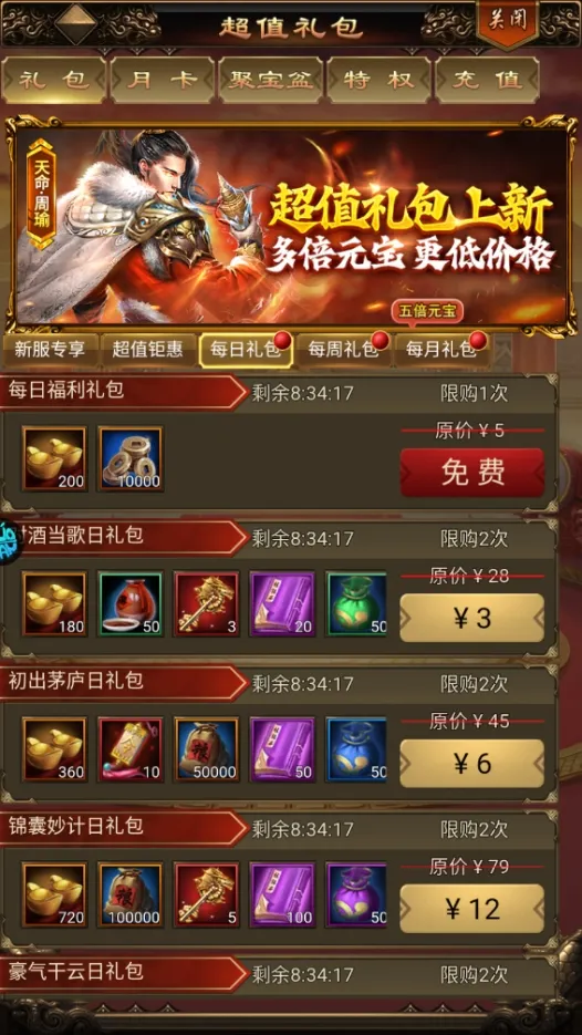 3、超值礼包中也可以免费领取每日、每周或者每月礼包哦