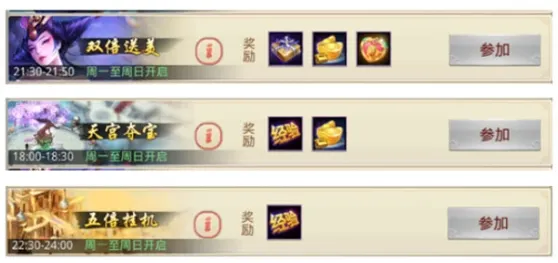 除此之外,《重生之明月传说》还有双倍护送,天宫夺宝以及五倍挂机等限时活动供人选择,总的活动思路大概是,副本能做的先做,没有副本做就做日常,如果遇到限时活动则先参加限时再做日常。