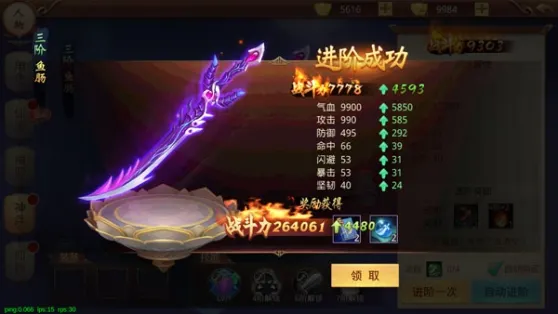 人物进阶系统进化需要消耗相应的“进阶丹”,每进化一次会增加祝福值,当祝福值达到满值时,对应的模块将进化到下一阶,并且获得对应的进阶奖励。每个模块进阶成功后不仅能为人物角色提供属性增幅,还能获得更炫酷外形的高阶外观。