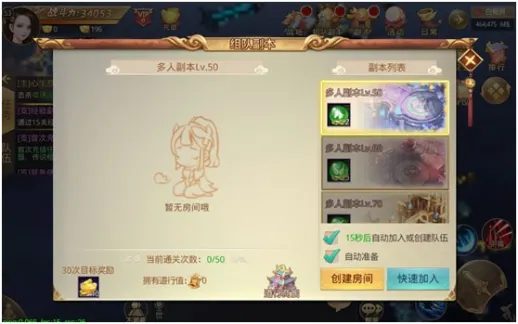 50级在转眼间来到你面前,这时候组队副本开始开放给大家。在历经了前面的考验之后,组队副本提供丰富的经验以及道行,玩家在提升等级的同时,可以拿到道行在商城兑换进阶丹等珍贵道具哦。