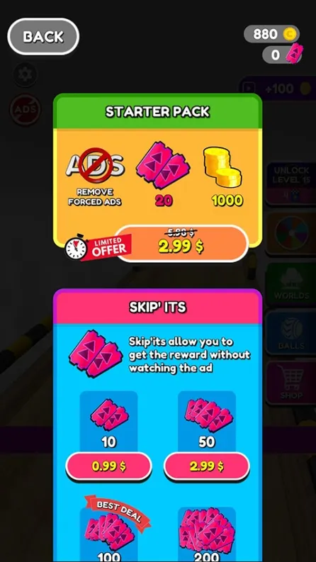 10、选择【SHOP】,可进行金币、卡牌等道具的购买,以上就是Going Balls球球酷跑游戏攻略了。