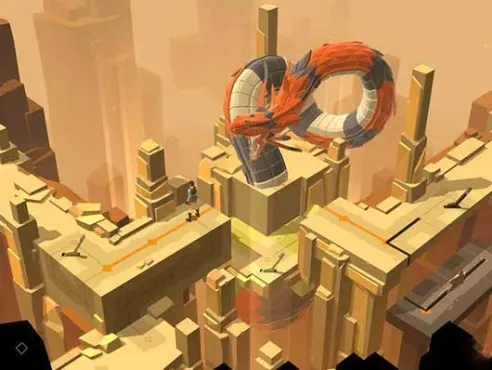 顺利来到场景二,我们不要因为巨蟒的再次出现而慌了阵脚,事实上在这个关卡巨蟒是不会被杀死的只能被击退,所以小伙伴们可以见怪不怪了。首先我们要扳动黑色机关按钮,让处在黑色移动平台上的毒蛇向前方移动,这样我们可以顺利击杀挡在我们面前的第一条毒蛇。但是第二条毒蛇依然正对着我们即将走过的路线,思考一下发现只能用巨蟒的袭击干掉它。将黑色机关扳回原位,我们再走到巨蟒的攻击路线上,成功吸引巨蟒的注意后后撤一步,这个时候巨蟒会将眼前道路上的所有东西吞噬干净,待巨蟒走远后跳下平台即可。