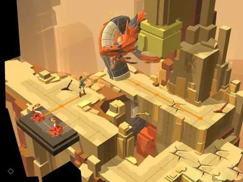 接下来的路程依然需要技巧,我们操纵劳拉从右方的岩壁处进发,注意不要一开始就吸引巨蟒的仇恨。右边绕过去扳动红色机关,下方升降台抬升构成一个墙壁的回路。这个时候我们需要做的是先手爬上高台,紧接着从破碎的墙砖上掉落,这个时候巨蟒会被我们吸引摆出攻击姿态,当我们向下爬的时候巨蟒也会发动攻击。成功躲避第一次攻击后我们向左侧爬行来到黄色机关处,跳上高台再吸引一次巨蟒仇恨,跳下去的同时触发黄色机关按钮,正在攻击的巨蟒就会被下落的黄色大锤所砸中,负伤逃回洞中,我们得以顺利通过场景二。