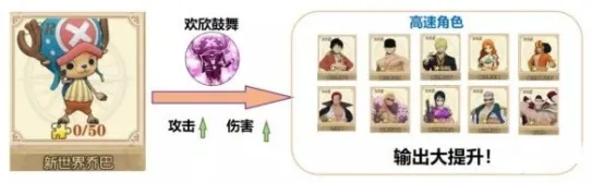 新世界乔巴主要是依靠【欢欣鼓舞】来增加伤害,并且为新世界路飞抵挡对位攻击。