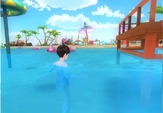 在休闲区不仅能上天还能下海,走进海里就会变成游泳状态,记得穿上美美的泳衣~