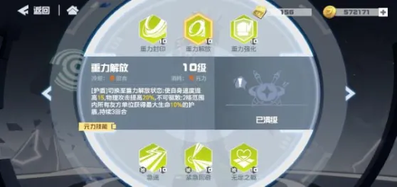 首先是重力释放,消耗4元力,提高自身速度和攻击,给自己和一定距离内友方单位提供护盾。