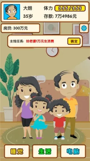 1、游戏中玩家将扮演上有老下有小的中年大叔,面临巨大的生存经济压力。