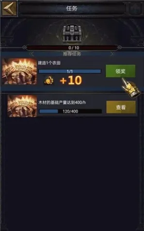 6、按照提示去建造建筑,农田是生产并储存粮食的地方,点击前往建造,另外升级农田可以获得更高的生产量和容量,如图所示