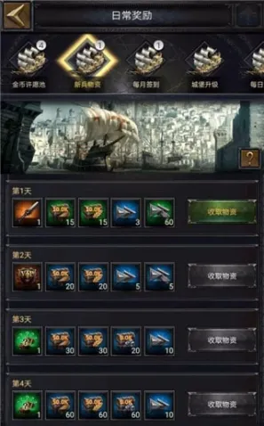 5、快速发展实力,需要获得新兵物资,可以前往日常奖励获得,如图所示