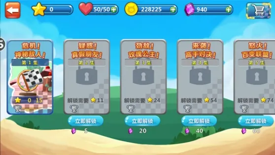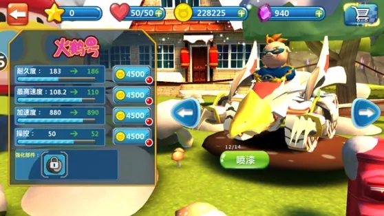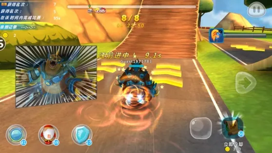 8、不要追求第一名,而是优先达成关卡目标。AI的车辆比我们优秀的多,不使用道具很难获得第一名,而道具是收费的,我们应该将重要道具用在难关,比如冠军赛!