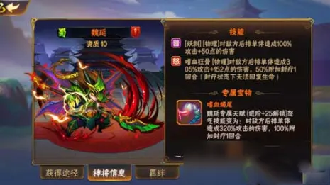 解析:(这是一个目标治疗技能,并不是所有武将,这个必须要理解。能够起到在战斗之中与对手牵制,生存提高的效果,不肉,却是等同,合成,魂魄,招募都是可以获得的。适合放在后排。)一眸一笑拔剑咆哮个性武将跃然在手
