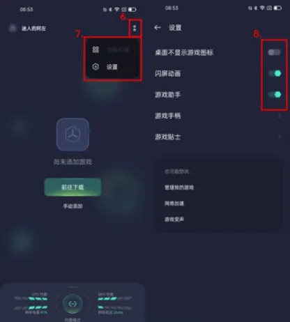 4、点击右上方“:”,还支持在桌面隐藏游戏图标、打开游戏助手,改变游戏空间布局等个性化设置。