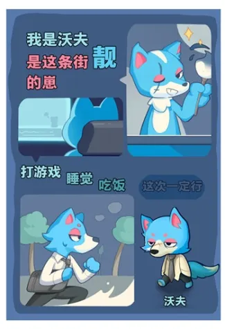 沃夫之前是一只吊儿郎当,喜欢打游戏的小狼,甚至会为了成为最靓的崽而自己给自己画一个刀疤,但是却没想到后来因为尬舞而留下的真疤会成为找实习时候被拒绝的理由