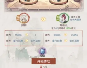 收获完后我们再用复灵丹进行救治后开始转移修为(温馨提示不建议转移到小师妹及掌门,因为传功每个弟子进行一个可以先转移到潜力超过9的弟子。)