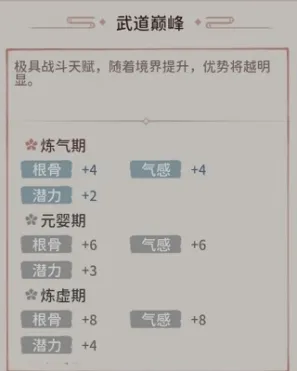 成长型属性随着境界提升会附加更多的属性,如图: