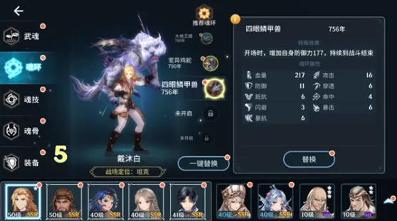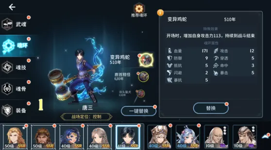 游戏里为每个角色都提供了对应的魂环推荐,可以在推荐魂环中选择已持有的魂环进行装备,相对而言比较简单。三炮这里还是建议,前期走极限攻击路线,将攻击堆满,过剧情的速度会略快,到了中期开始根据需求搭配对应的魂环。因为魂环能够随时进行拆卸和替换。