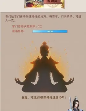 7、练功房:升级为[内门弟子]级别可以进,修炼一次1000灵石 (五倍速度十年,每天必进)
