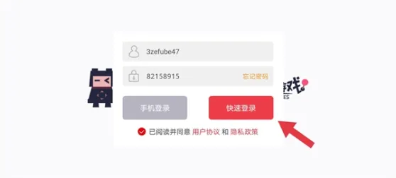 1、第一次打开游戏的玩家们可以使用随机账号密码快速完成登录。