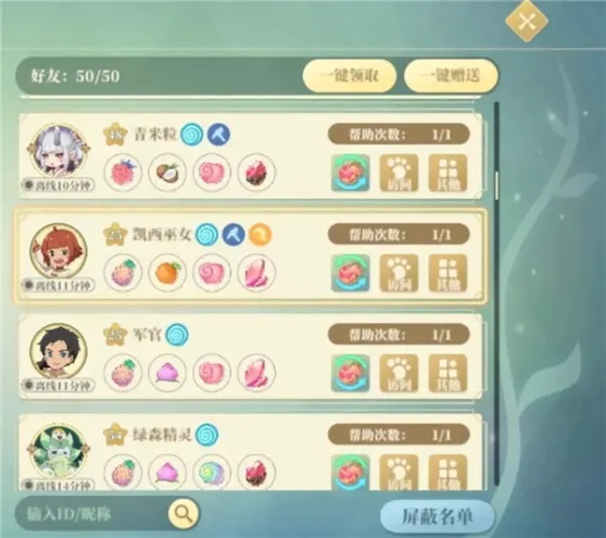 3.村长注意维护自己的好友,离线长的及时清理换新,好友当天上线后概率刷新大矿点、大渔点和大蔓点,每天可以去采集清宝具能量。
