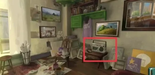 2、移动至收音机处,然后将磁带放入收音机里,播放音乐;