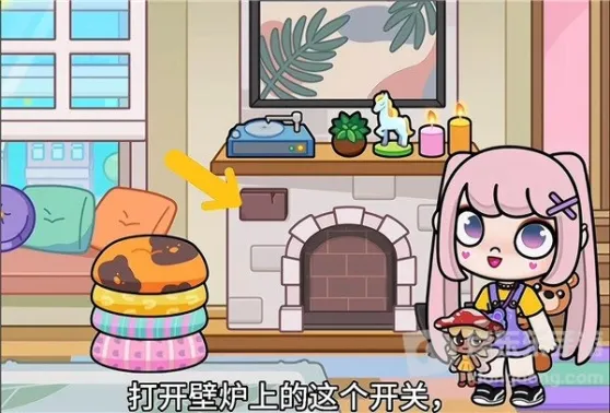 5、壁炉上有一个与墙壁颜色不一致的砖块,这是一个开关,打开它