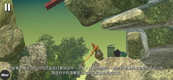 掘地求升中文最新版是当下非常热门的一款休闲益智类游戏,是steam平台移植过来的,自上线以来就深受广大玩家们的喜爱,但也很虐心,甚至很多玩家差点因为这款游戏而剁手。游戏中玩家将操控一个装在罐子里的人来进行爬山,你将遇到很多能够让人崩溃的困难,需要用手中的长柄榔头,然后以攀岩的玩法,使用榔头不断向上攀登由石头、家具等稀奇古怪的东西组成的高塔,然后爬出大气层、飞向太空,最后才算是闯关成功。