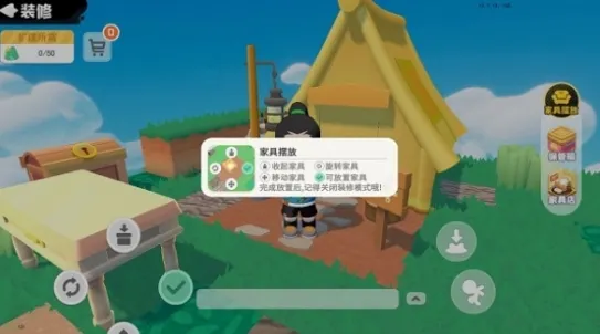 将家具放到位置上,会有调整按钮出现,完成放置后,关闭装修模式就好了。