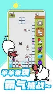 挑战的过程中你将会遇到大量随意蹦跑的小羊,同时你还需要完成方块消除。