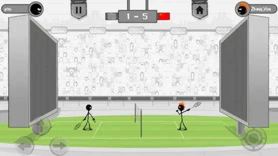 两边的火柴人后面的墙壁会让羽毛球弹回来,如果玩家成功击回去没有什么差别,但是这是让对手十分的很好位置,打到墙上基本就能得分咯~!
