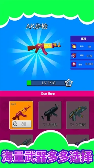 3.玩法丰富多样,除了购买武器以外,你还能解锁各种技能和强化武器,提升自己的能力。