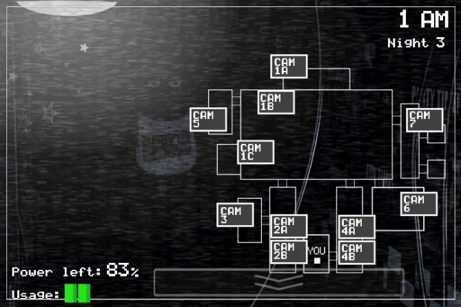 《玩具熊的五夜后宫2》是一款恐怖的解谜逃脱游戏。该游戏通过诡异的画面和惊悚的音效,为玩家呈现了一个独特的恐怖体验。玩法与前作相同,玩家将被困在一个没有门的监控室中。这个监控室只能通过管道与外界连接,而玩具们会利用这些管道,逐渐爬入监控室。