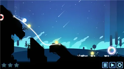 3.用星光画一条线,引导狐狸滚动并到达光圈,如果你在路上掉进山谷或者跑出了画面,那就是失败。