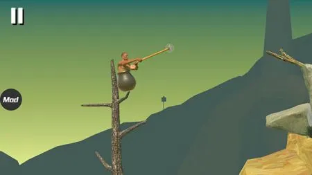 2、玩家控制一个坐在似乎是缸里的人,用一把榔头不断往上爬,操作极其简单。