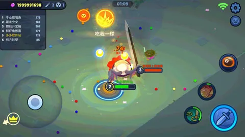 4、天梯模式非常实用的技巧,我们在地图上初始会有很多移动的小泥团,这个彩色小泥团会绕圈走,顺时针逆时针都有,这个时候我们想要快速升级就是要逆着这些小泥团的方向,这样可以让你快速吃到最多的泥团。