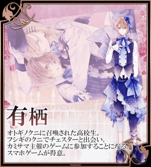 御伽之国这款游戏里,高中生有栖和铃斗在放学的路上,冷不丁就掉进了叫做“御伽之国”的另外一个世界。这个地方是由“神”说了算的,存在好多童话故事里的国度。有栖和“不思议之国”的杰斯塔,铃斗和“永远之岛”的空,他们一起去参加由“神”组织的“能让获胜者愿望成真”的比赛。在比赛的过程中,发生了好多好多的事情,他们到底能不能实现自己的愿望呢?