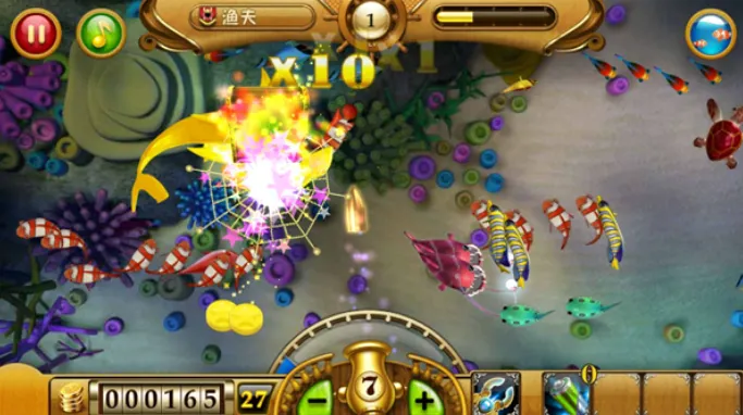 2、成功捕获的鱼儿都会化为滚滚金币,不同鱼群回报的金币数额也不尽相同。