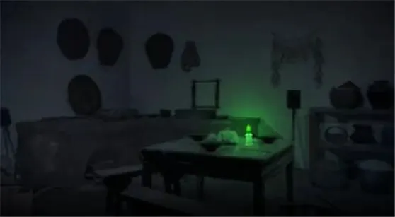 21、然后把烟盒和白蜡烛放在柜子上使用火柴,烧纸钱送走厉鬼,退出房间往右走即可。
