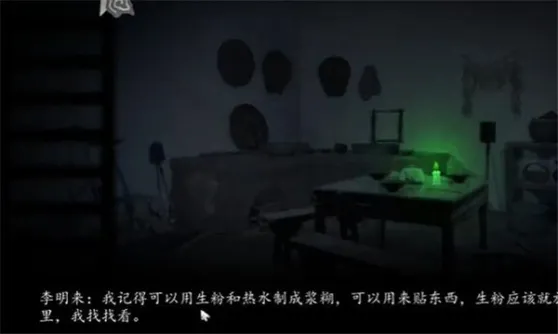 38、点击桌子上的蜡烛,蜡烛点亮后,在右方的罐子中获取【生粉】。