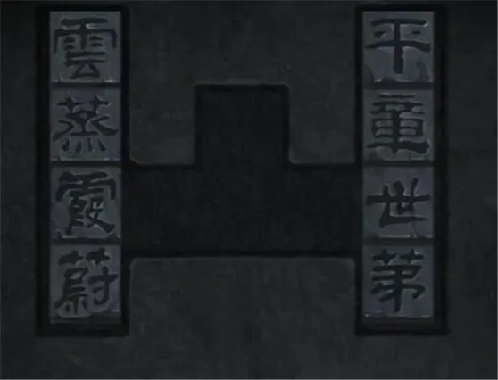 83、将获取的四个【石块】放入,根据步骤100的石碑上的文字提示,善加利用中间凸出的位置,将其调整为下图所示文字排列即可。