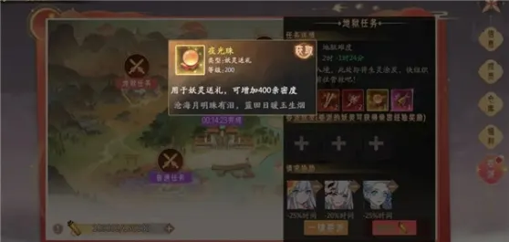 最后就是帮派委派了,完成帮派委派任务可以获得妖灵送礼道具,将道具送给可爱的妖灵会提升自己的战力。