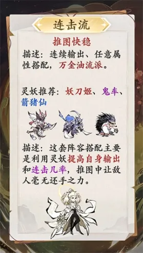 描述:这套阵容搭配主要是利用灵妖提高自身输出和连击几率,推图中让敌人毫无还手之力。