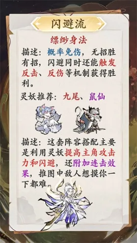 描述:概率免伤,无招胜有招,闪避同时还能触发反击、反伤等机制获得胜利。