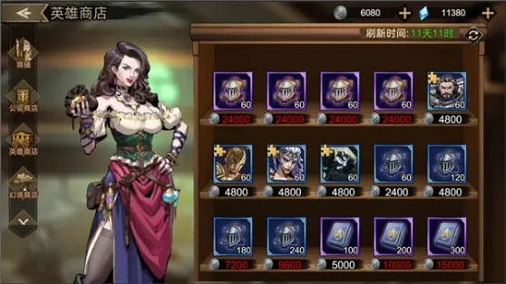 (2)英雄币:可通过遣散英雄获得,可以在英雄商店购买紫色英雄碎片、蓝色英雄碎片、兵种科技和神器的升级材料。这个留着换紫碎就行。