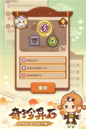 采集点数不够可以升阶厨子,装备相应厨具,需要一定金币与符文,符文包可大大缩短时间(氪金大佬随意)