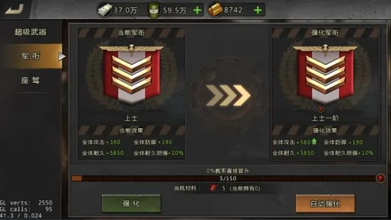 指挥官军衔35级解锁,提升军衔等级可大幅提升坦克及个人战力,升级军衔所需的勋章道具可通过挑战远征获得!
