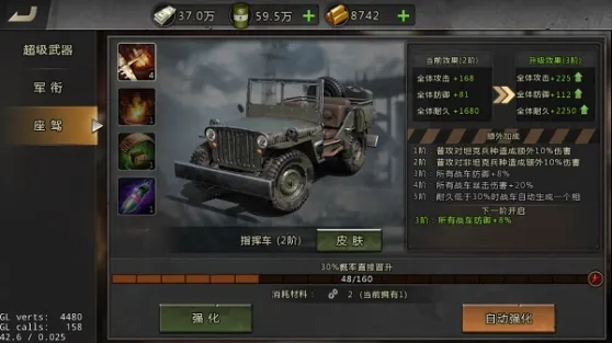 坦克改造后可提升品质,每次品质颜色的变化均能解锁新的技能,共4个,持续升级坦克技能可快速提升坦克及个人战力!