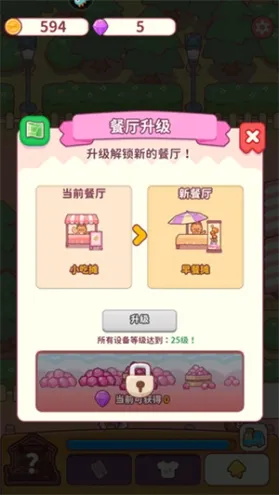 5、当完成全部任务后还可升级解锁新的餐厅,现在开始经营你的餐厅吧!